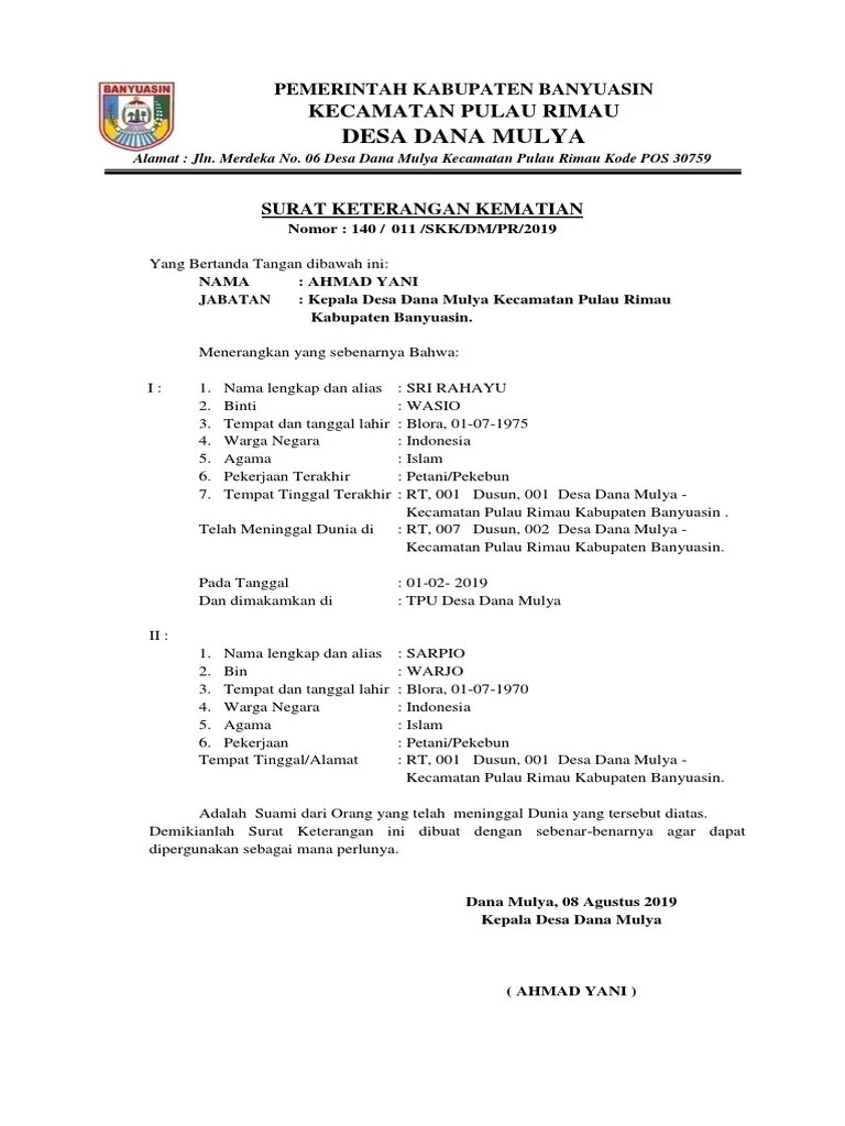 Demikian surat keterangan kematian ini kami buat untuk dapat dipergunakan sebagaimana mestinya. Benar warga kami yang meninggal dunia pada hari jumat, tanggal 13 juli 2021 di rumah sakit sehat selalu akibat kecelakaan lalu lintas. Apabila almarhum meninggal di rumah sakit maka dapat meminta surat keterangan dokter. Surat keterangan kematian dari kepala kelurahan/ kepala desa. Syarat dan cara mengurus akta kematian disdukcapil 2021 mengurus surat.